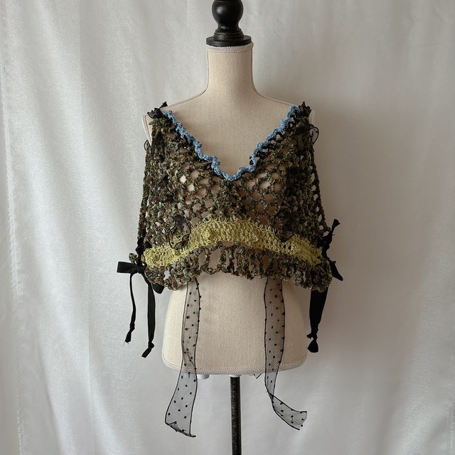 爽やかな空気が流れる森林イメージです。 〈サイズ〉 幅:50cm〜(サイドのリボンで長さは調整して頂けます。) 長さ:36cm 〈素材〉 ウール,ポリエステル、綿,ナイロン ※商品画像はお使いのモニター設定等により色味が異なる場合がございます。 ※洗濯は、中性洗剤を使用して手洗いで優しく洗って下さい。 干す際は、直射日光の当たらない場所で平干しして頂くと綺麗に着て頂けます。