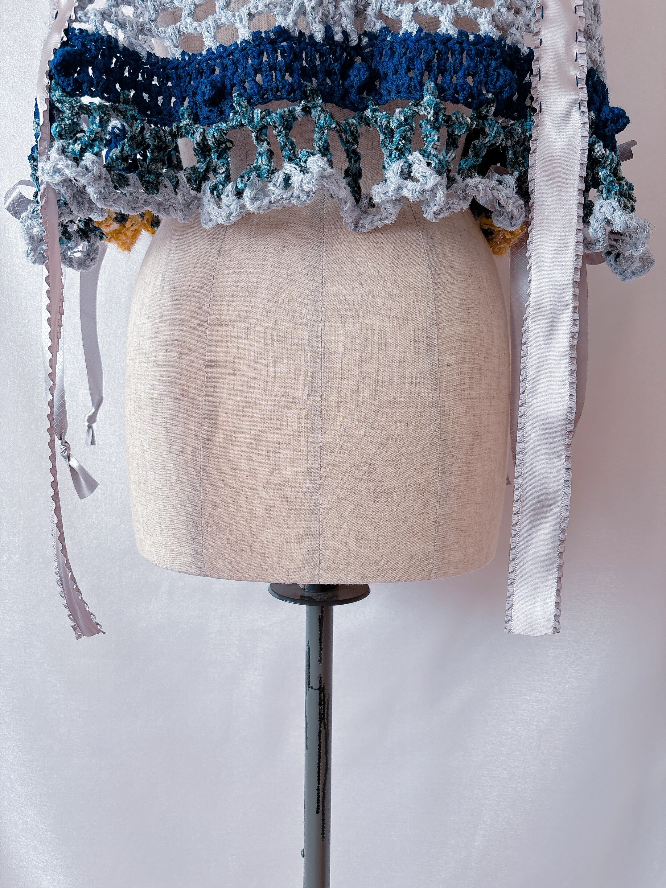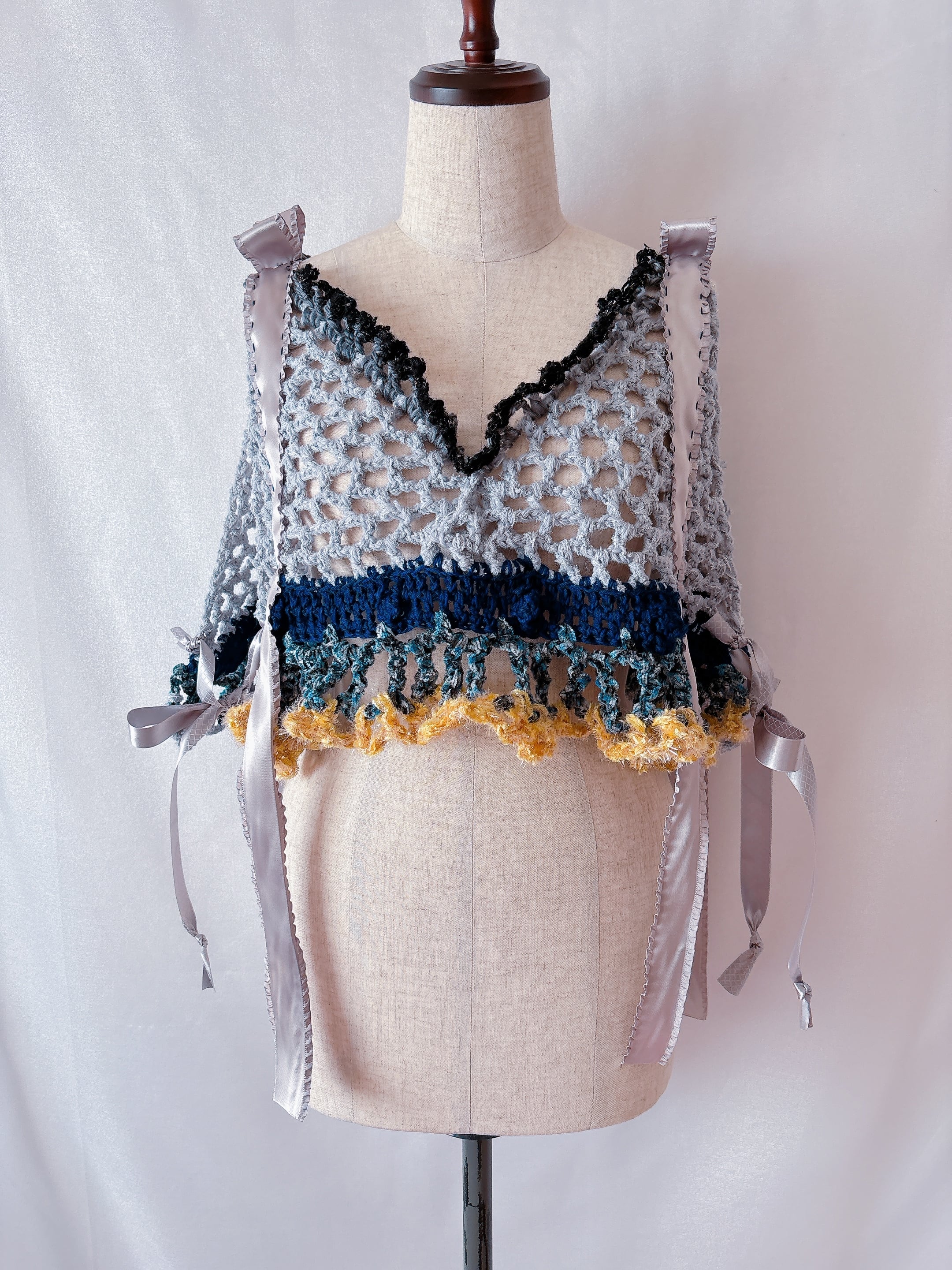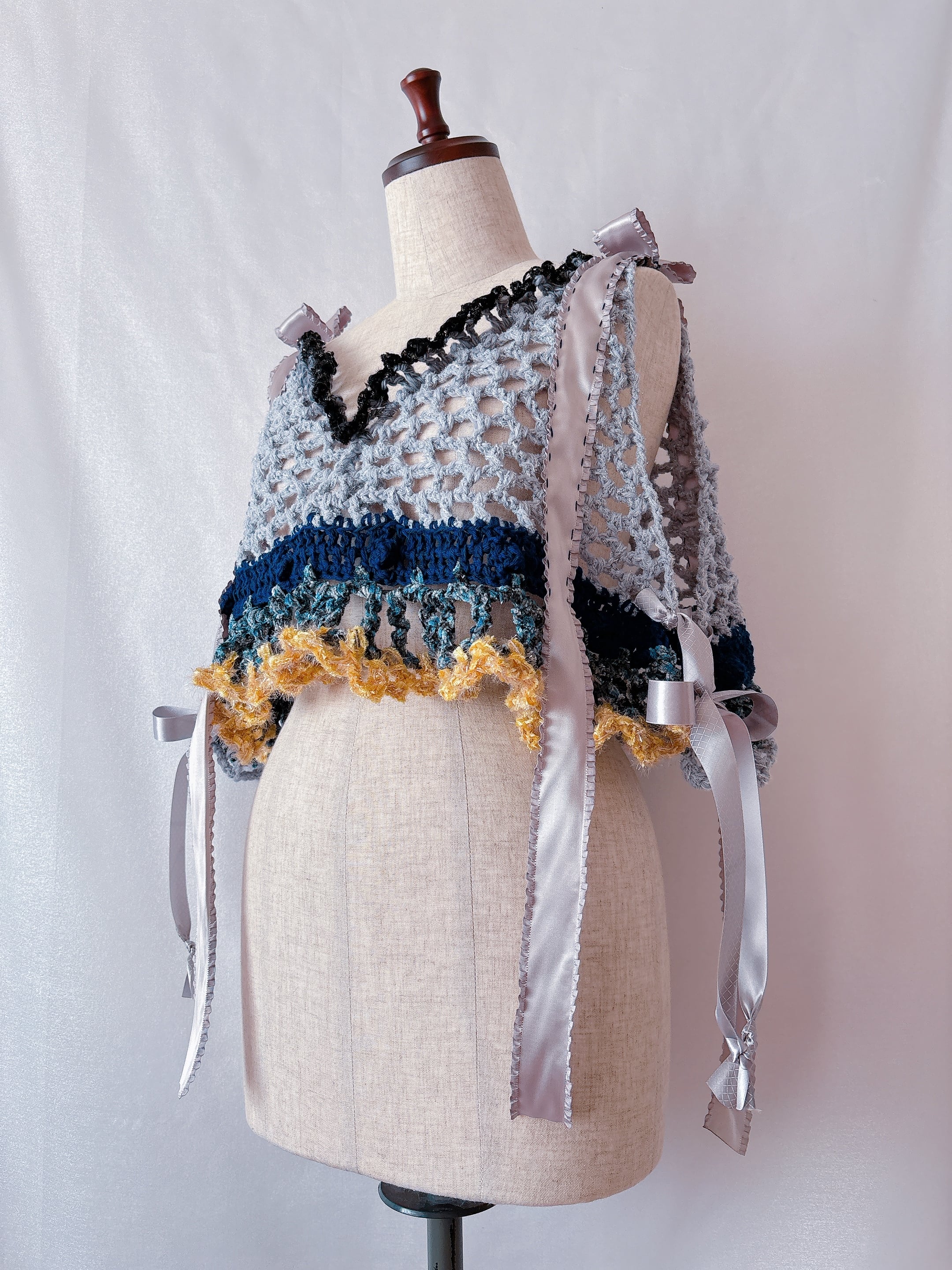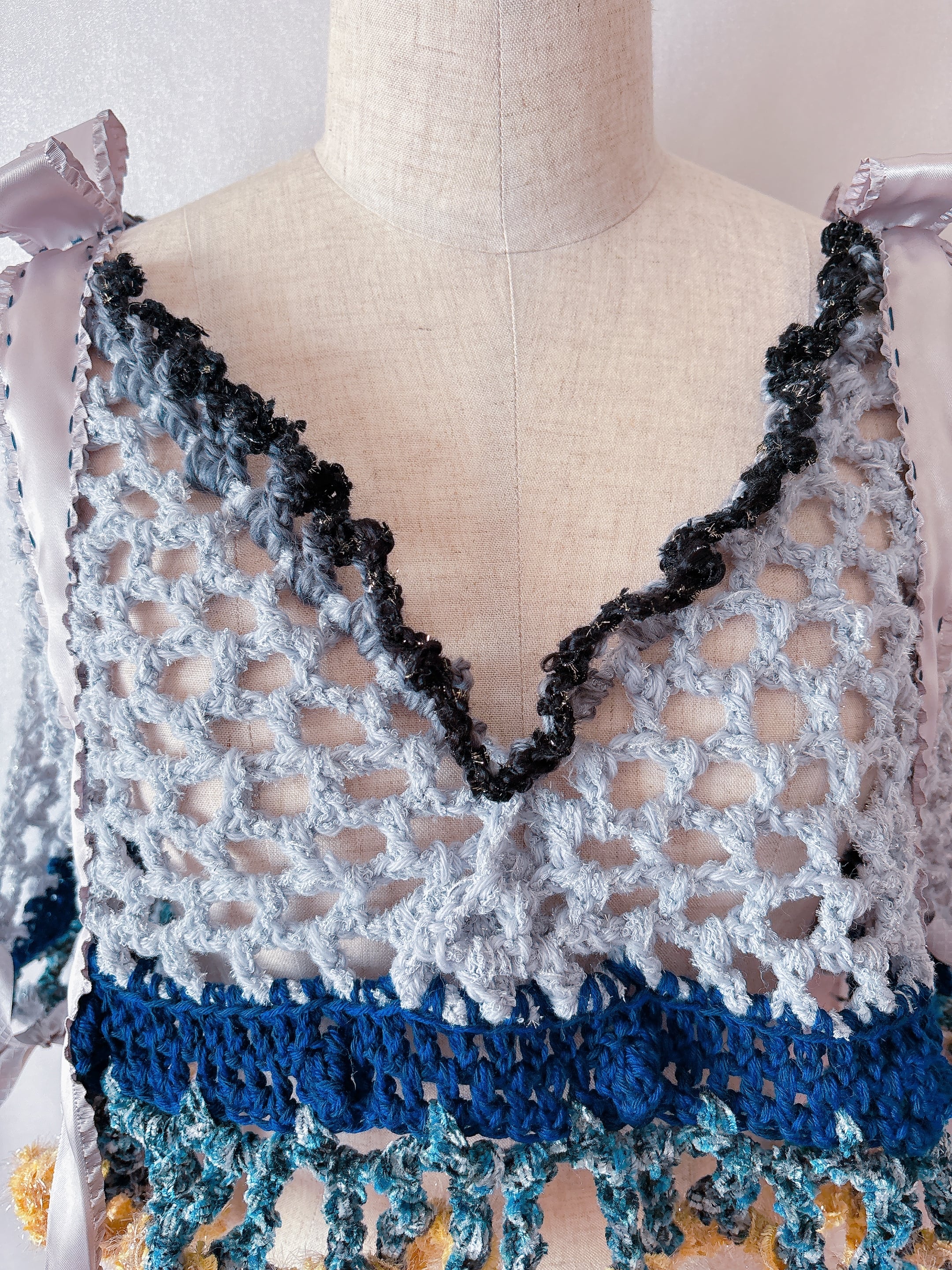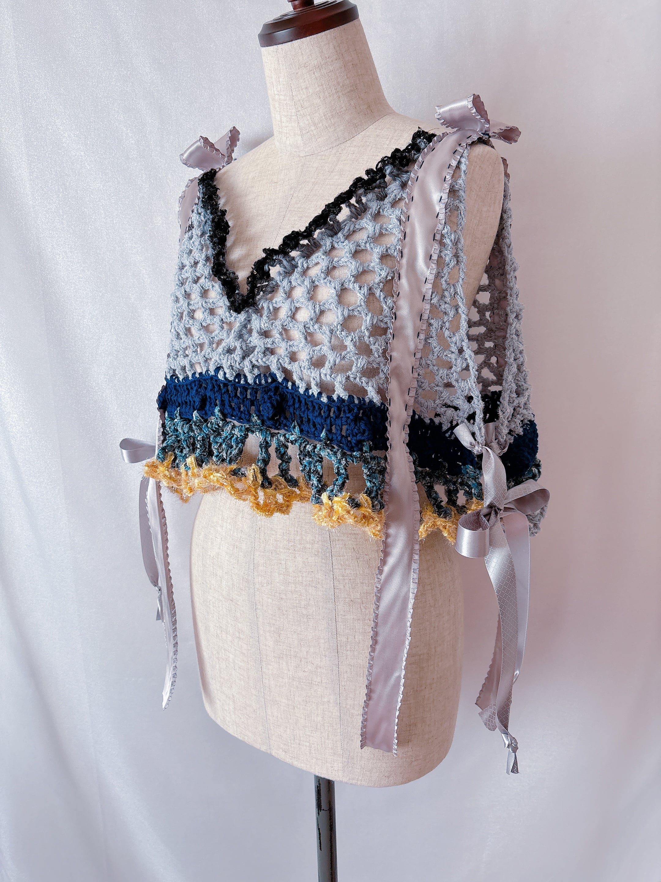 雪が降ってる、少し灰色な雲が残っている空をイメージしたビスチェです。