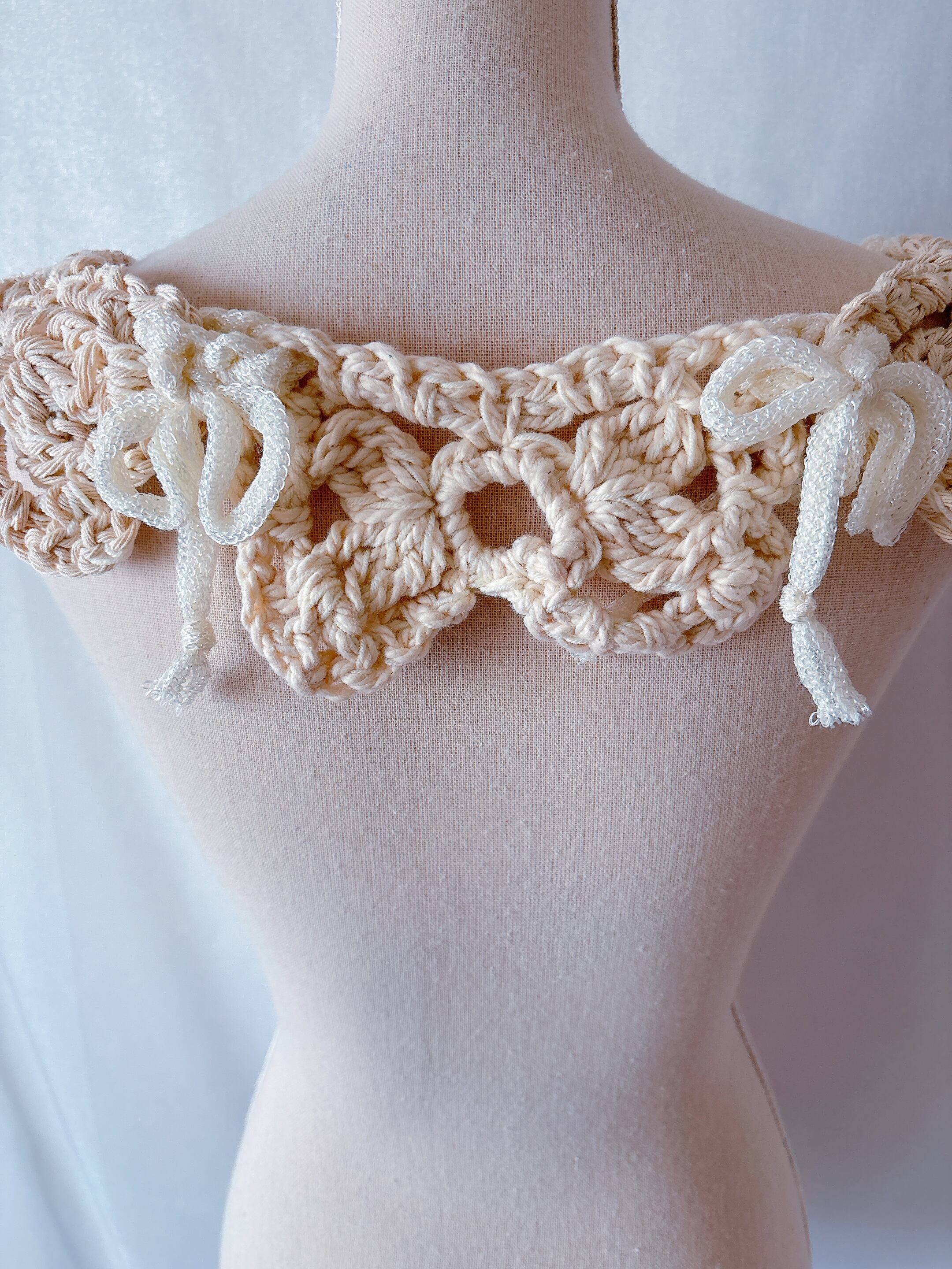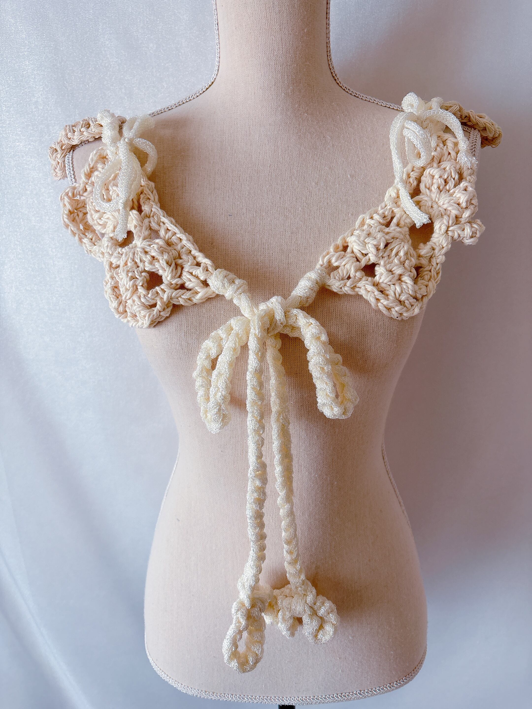 結んで繋げるリボンなつけ襟(生クリーム)